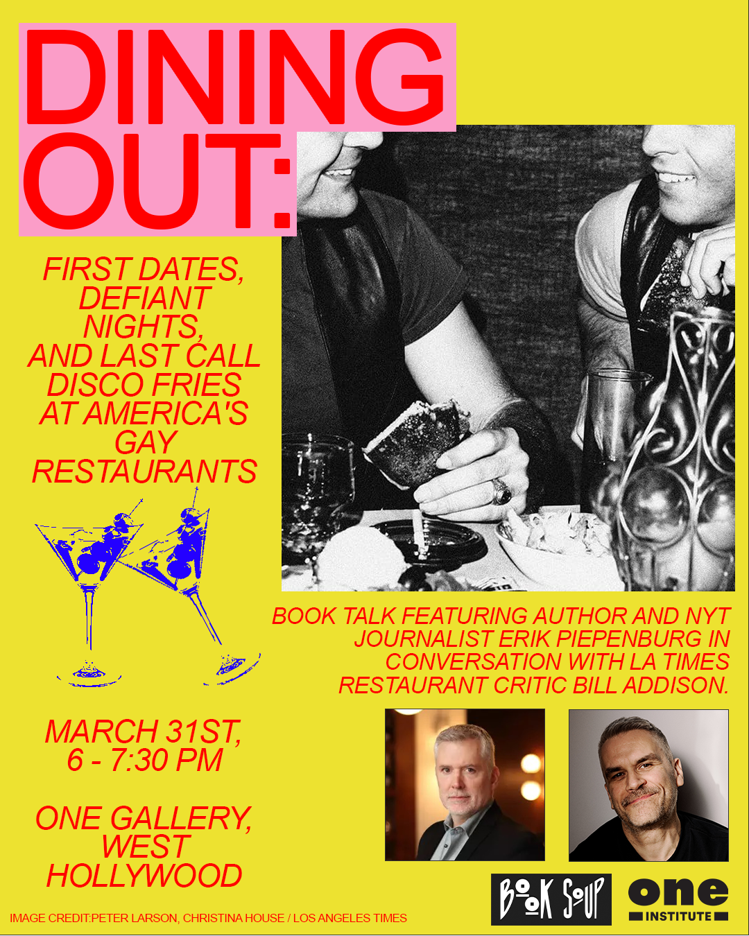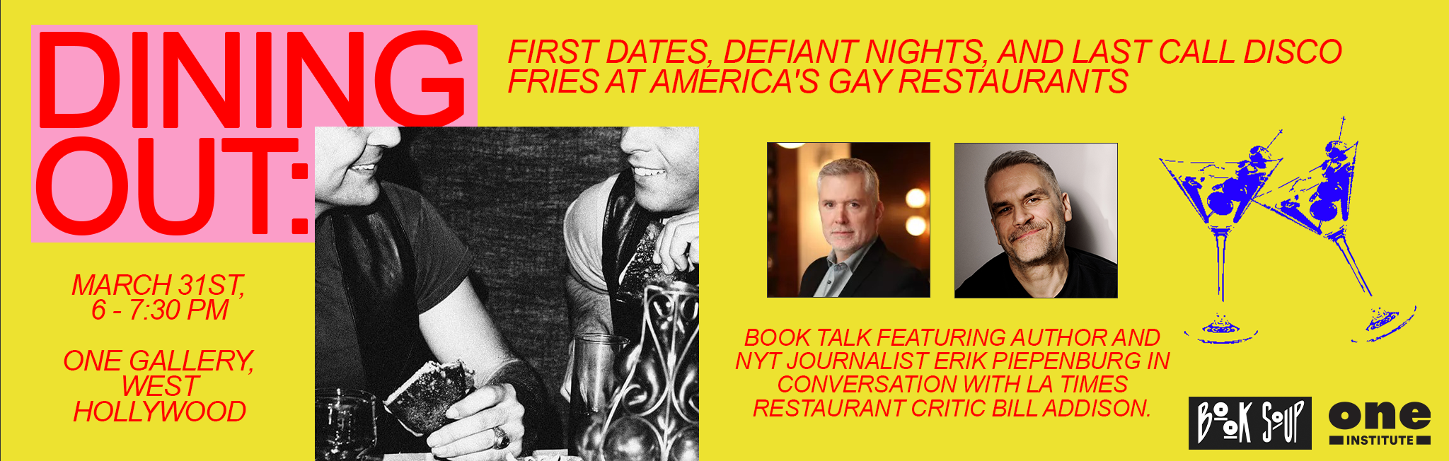Join us for a conversation with author Erik Piepenburg as well as LA Times Food Critic Bill Addison for a conversation about the book, as well as Los Angeles LGBTQ+ restaurants past, present, and future. Come ready to listen, share your memories, and learn something new.
