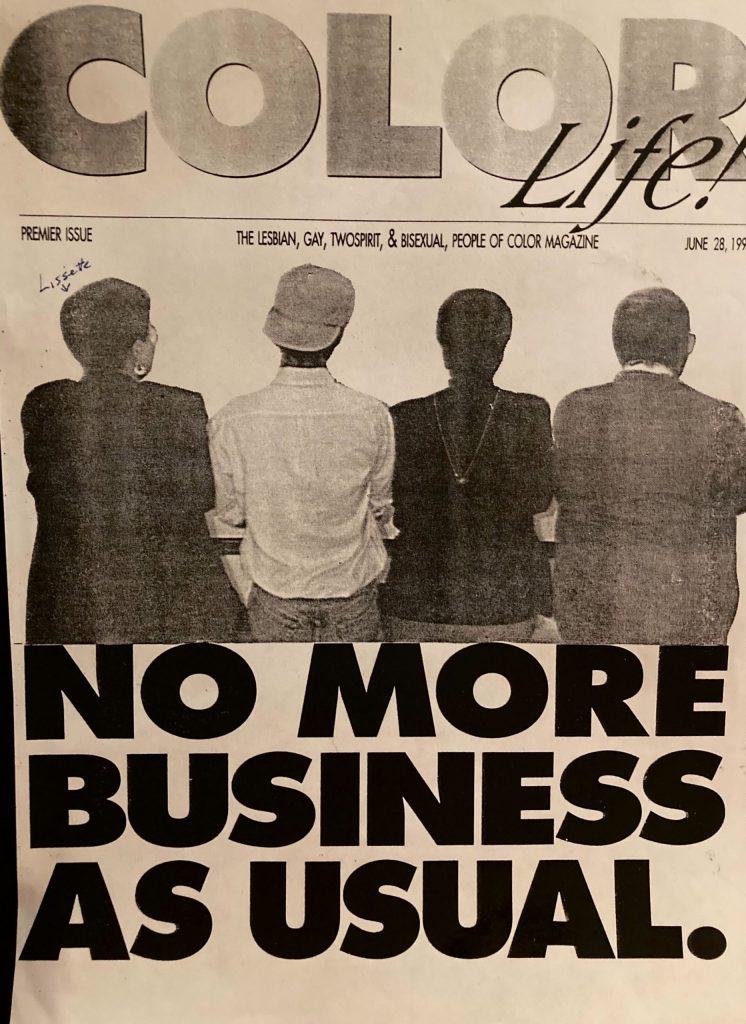 Each interviewee offers a piece of the story of COLORLife!, each woven into their life’s story. Lissette Cheng reveals the backstory of the cover of the first issue, “No More Business As Usual.” Sheilah Mabry speaks of being brought into COLORLife! by her cousin, the writer B. Michael Hunter, and writing as a way to advocate for the visibility of bisexual women of color such as herself. Mariana Romo-Carmona lays out the ecosystem of activism, including the Lesbian and Gay People of Color Steering Committee, which is central to COLORLife! origin, content, and production. Vondora Wilson speaks about bringing her experience as a writer and a representative for International Gay and Lesbian Association to COLORLife!, and how it felt to actually practice one’s politics (it was hard!).